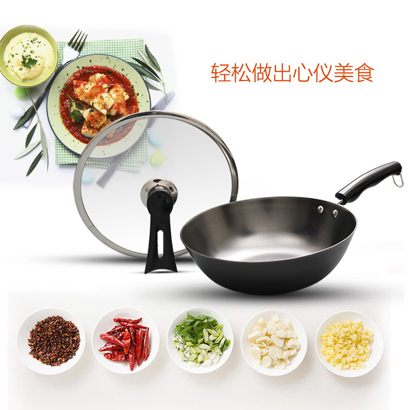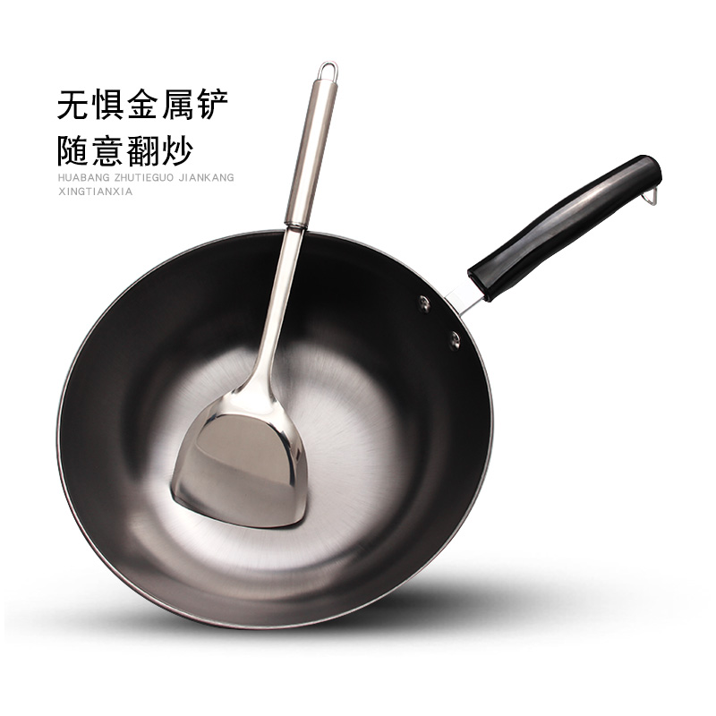正品 铁锅无涂层家用熟铁炒菜锅不粘锅适用燃气灶专用炒锅 传统老式