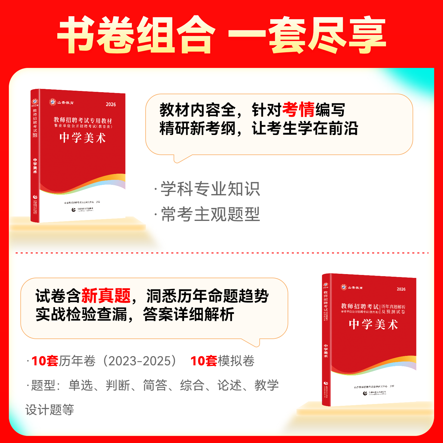 山香教育2026中学美术用书教师招聘考试中学美术教材及历年真题押题试卷