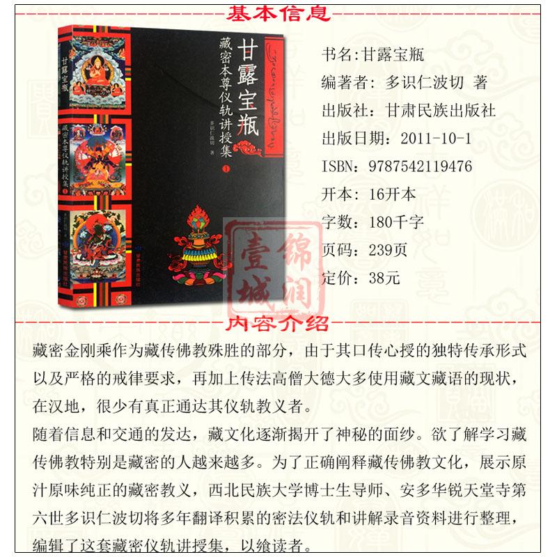 甘肃民族出版 多识仁波切 社 藏密本尊仪轨讲授集1 甘露宝瓶