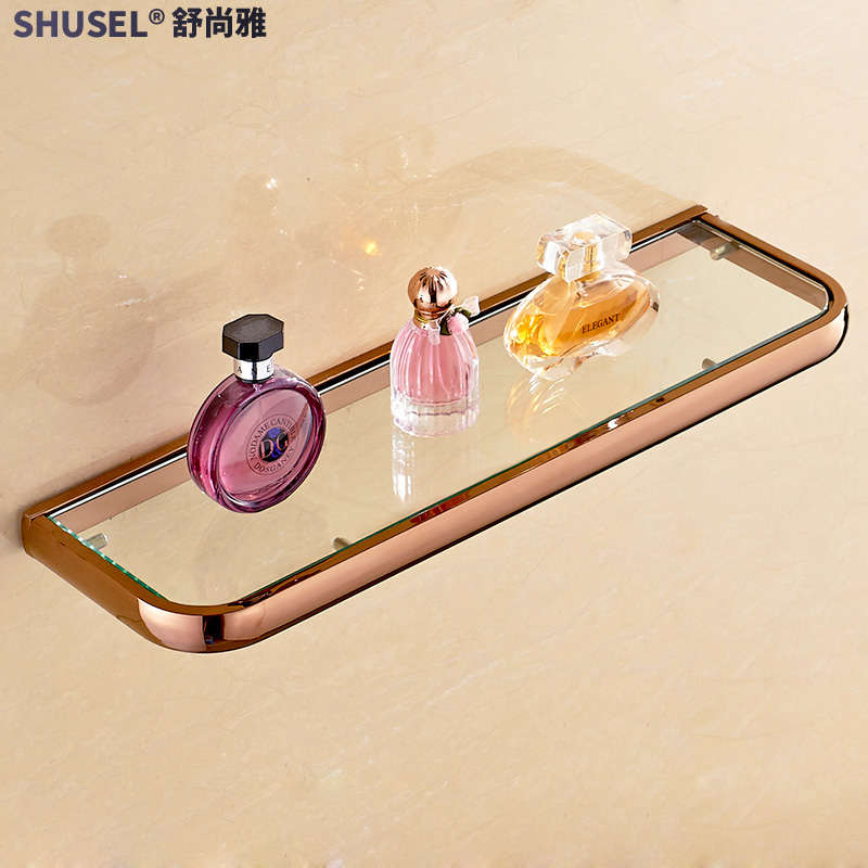 全铜仿古欧式 金色化妆品台架玫瑰金置物架卫生间浴室收纳玻璃台