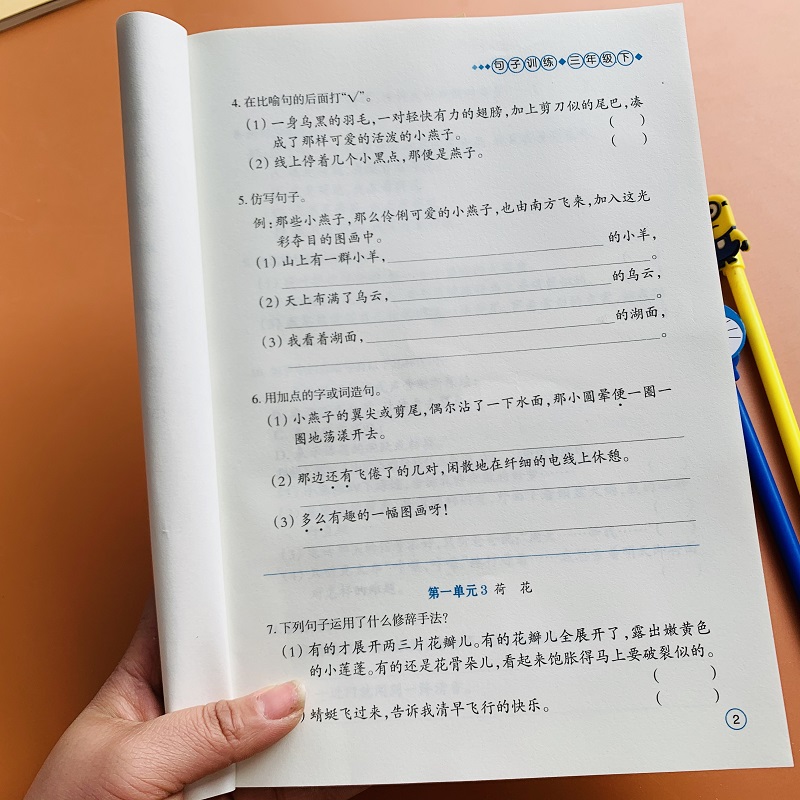 人教版 小学生三年级上下册语文句子训练全套2本照样子写句子加标点部编同步课堂课业3年级句子排序造句扩写句子把句子补充完整 新版
