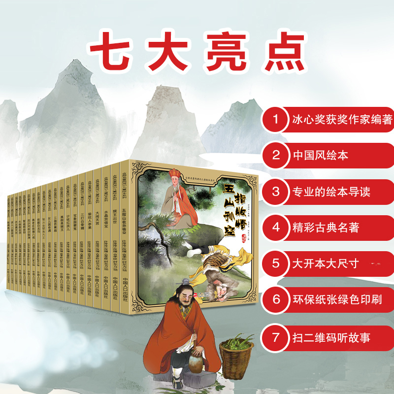 儿童3 8岁少儿全彩美绘本四大名著连环画老版 西游记绘本儿童版 三国演义故事小人书水浒传小学生版 幼儿版 原著幼儿漫画版 全套20册