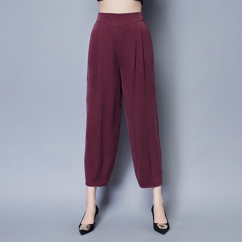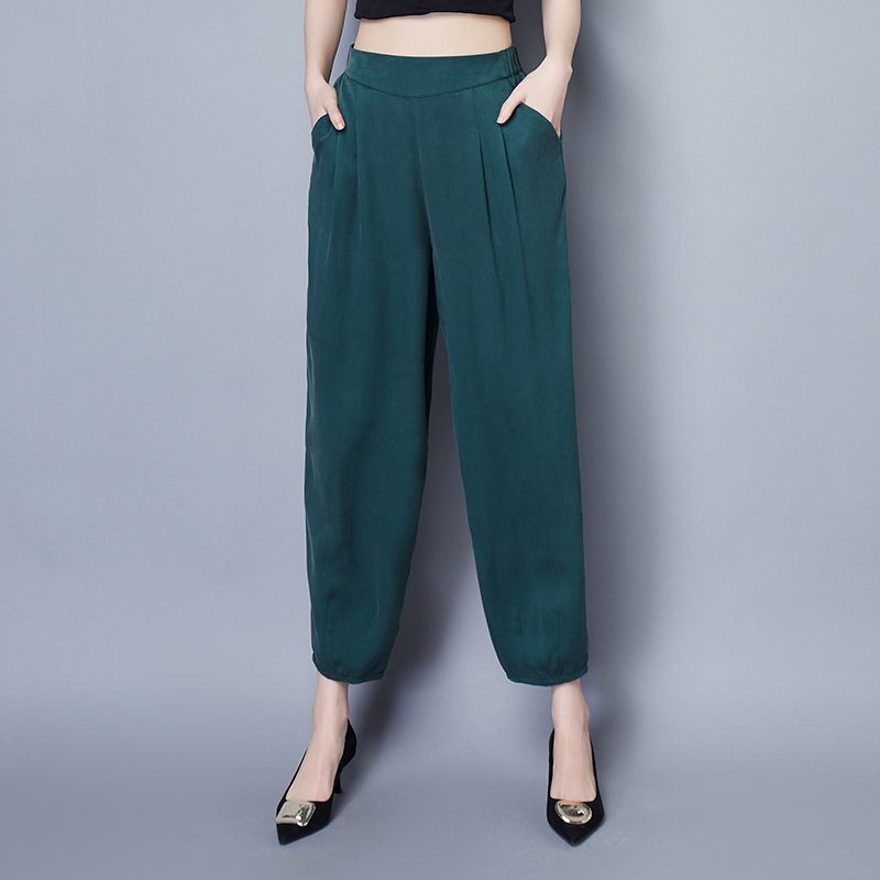 丝绸九分萝卜裤 桑蚕丝小脚女裤 夏宽松束脚百搭 大码 重磅真丝哈伦裤