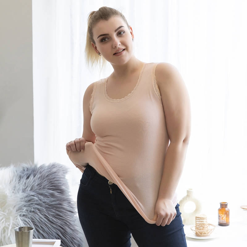 打底衫 吊带背心女棉蕾丝内衣加肥加大码 胖mm200斤遮肚子内搭无袖