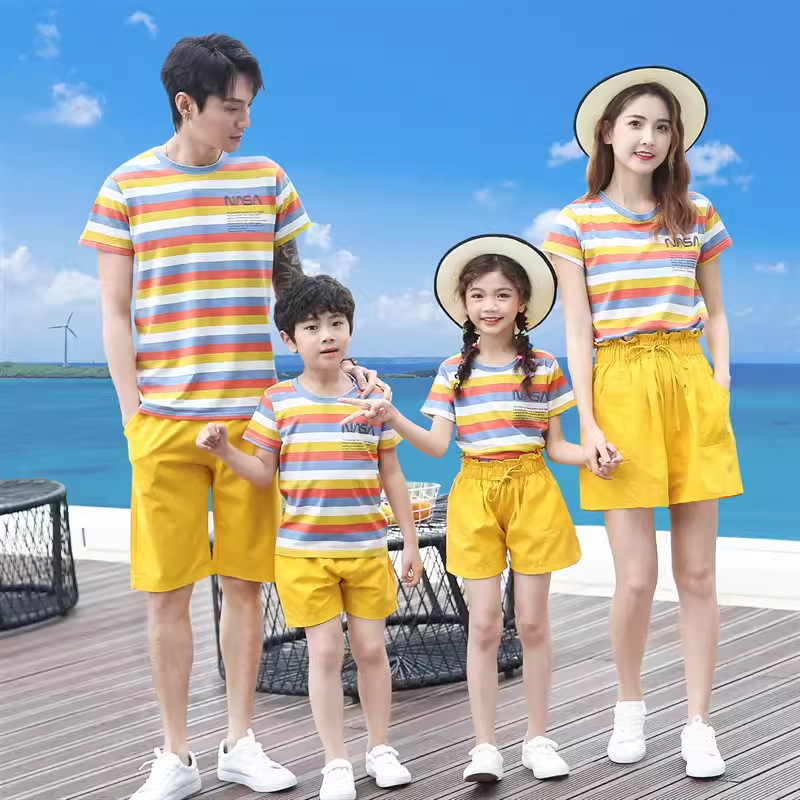 全家福 夏天姐弟兄妹父子母女多巴胺套装 亲子装 一家四口三2025新款