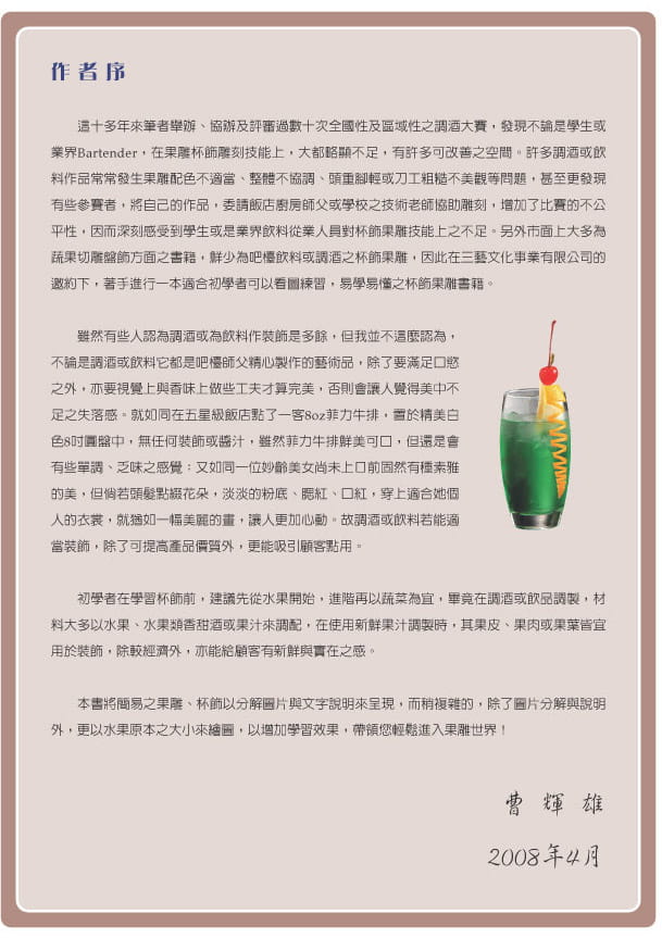 曹辉雄鸡尾酒杯饰果雕入门 进口书 二版 原版 饮食 三艺文化 预售
