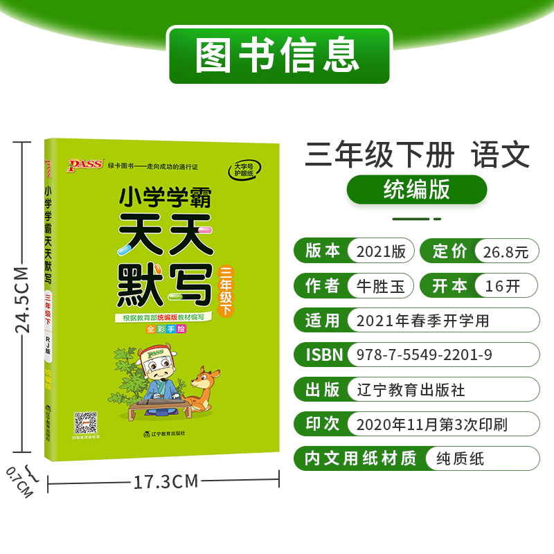 pass绿卡图书三年级下语文同步生字练字本 2025年春季 部编人教版 小学学霸天天默写语文三年级下册 语文默写小能手 开学用