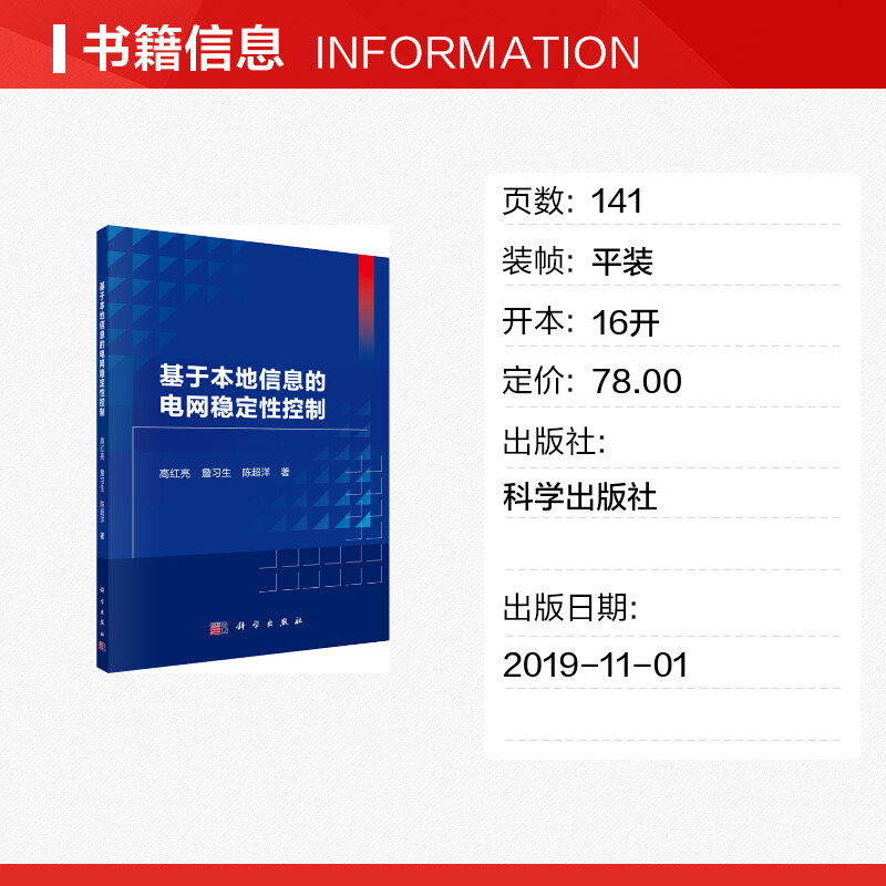 图书籍 社 詹习生 电工技术 家电维修专业科技 著 高红亮 陈超洋 科学出版 基于本地信息 新华书店正版 电网稳定性控制