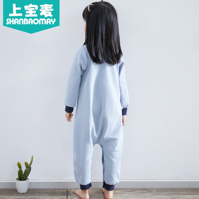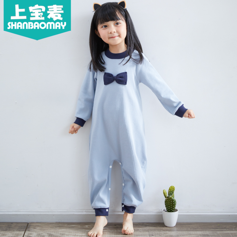 上宝麦春秋冬儿童连体睡衣棉加厚女童宝宝防踢睡衣纯棉家居服保暖