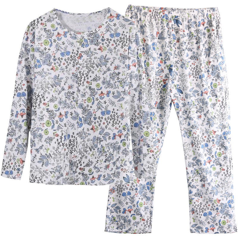 家居服宽松薄棉开襟松口套装 系扣子睡衣睡裤 开衫 中老年纯棉女长袖