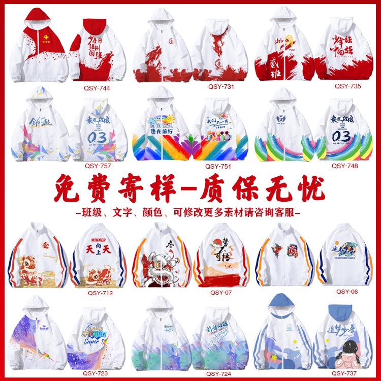班服卫衣定制小学生初中高中秋冬运动会三件套装 连帽风衣外套订做