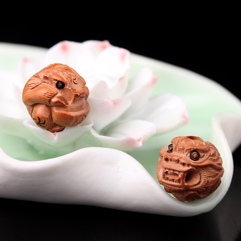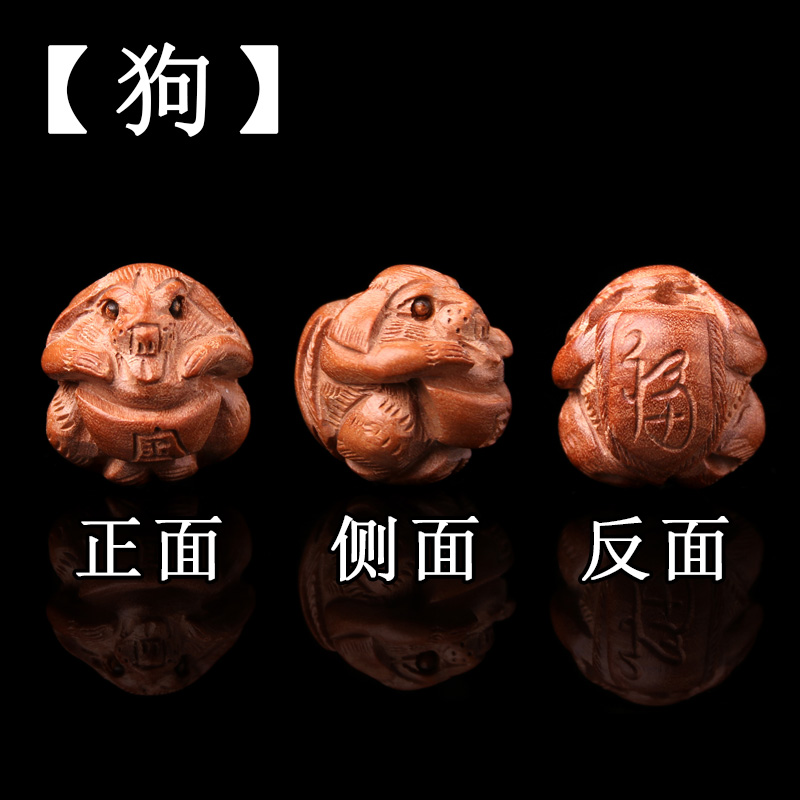 枣木雕刻十二生肖动物鼠牛虎兔龙马蛇羊猴鸡狗猪三合手链项链吊坠