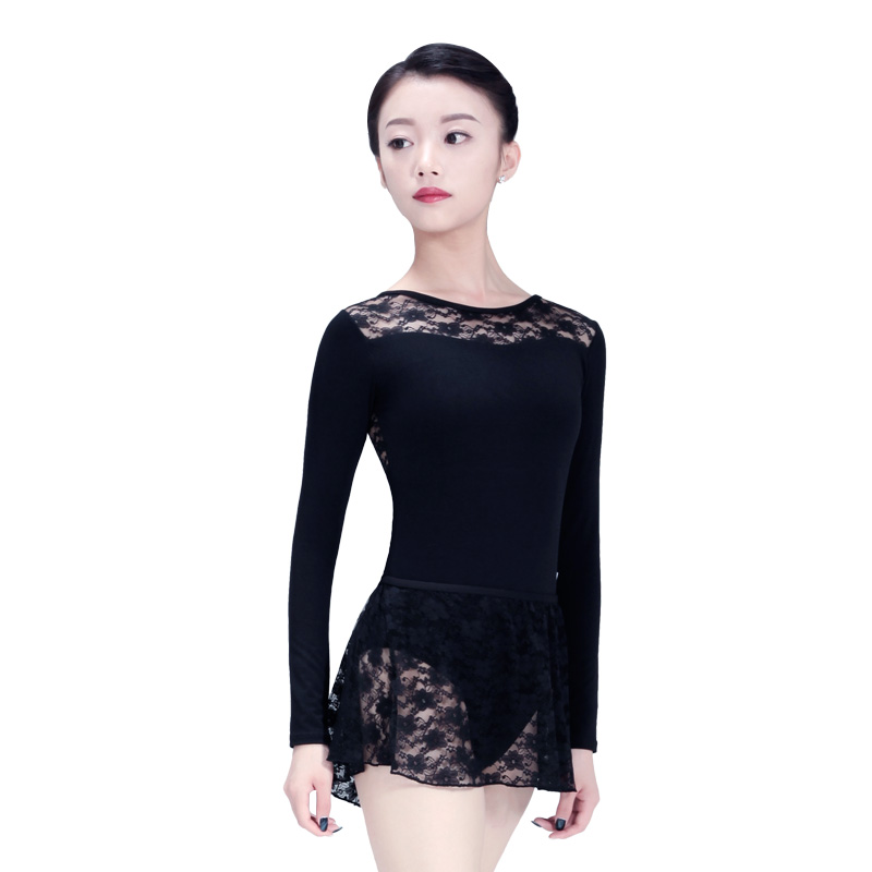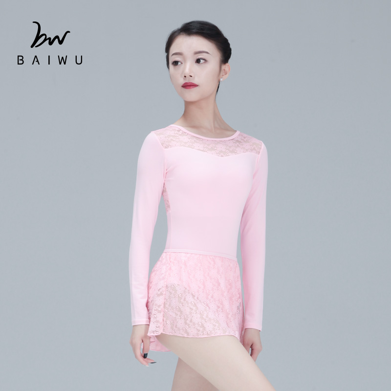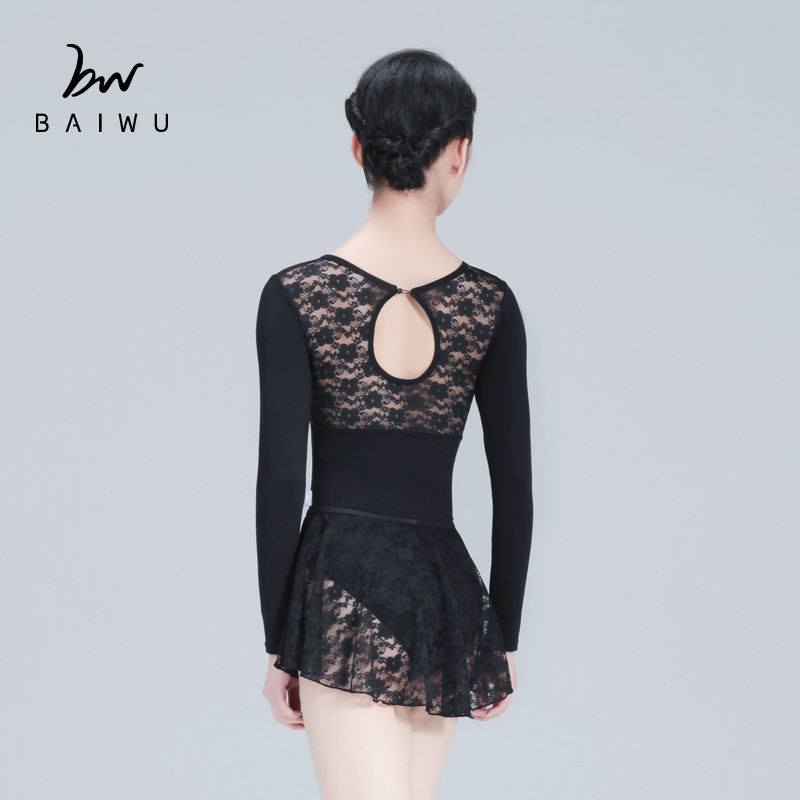 柏屋长袖 连体服女成人116141004 蕾丝芭蕾形体服舞蹈练功服修身