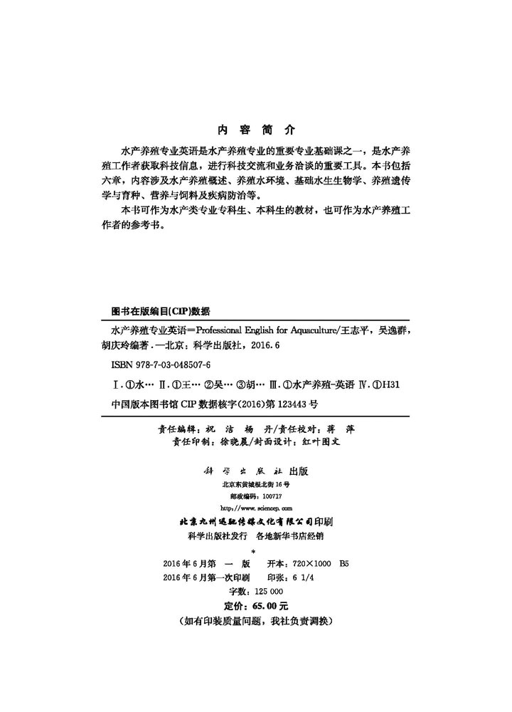 水产养殖专业英语科学出版 社