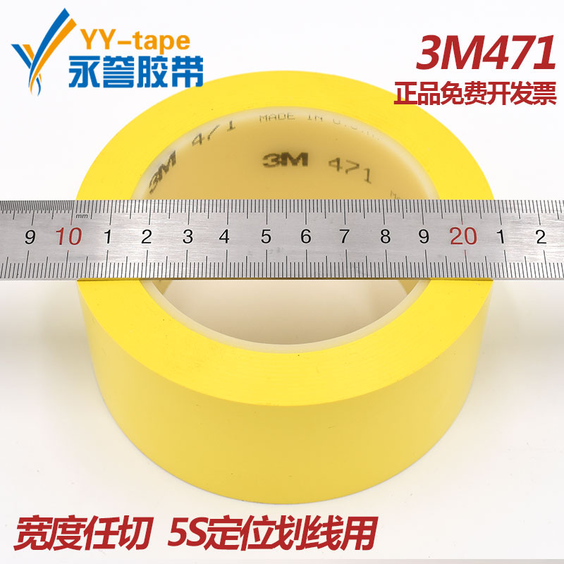 3M471地板胶带 黄色警示划线胶布汽车喷漆5S定位无尘车间标识胶带