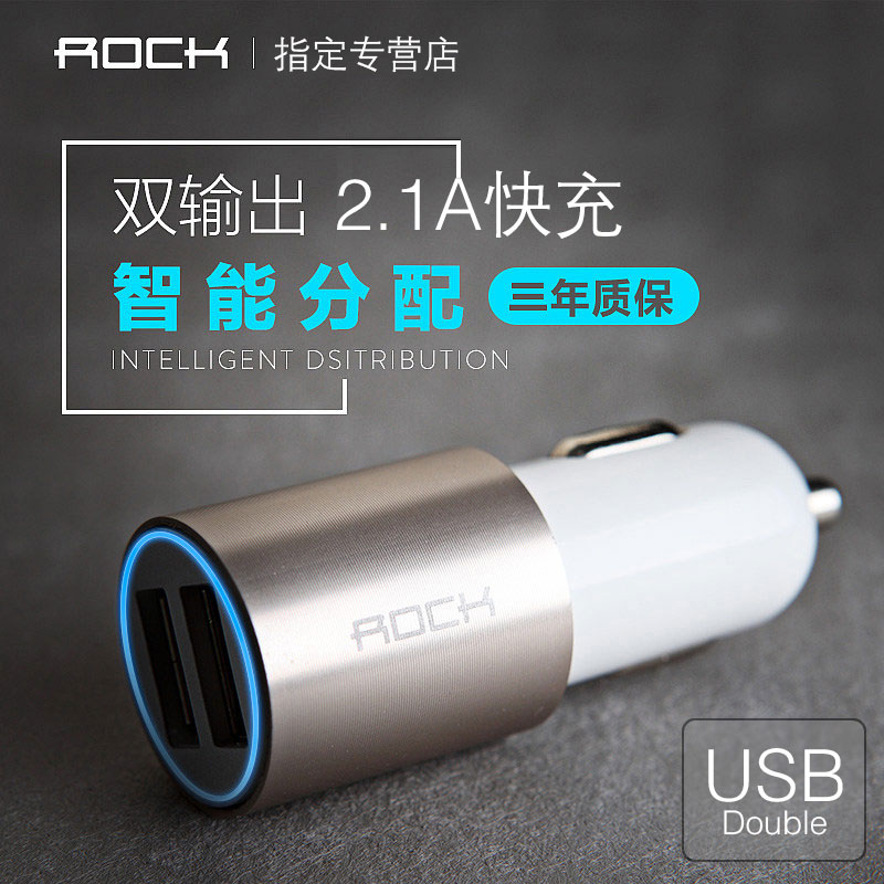 ROCK车载充电器点烟器车充 双USB汽车用安卓苹果2.1A多功能一拖二