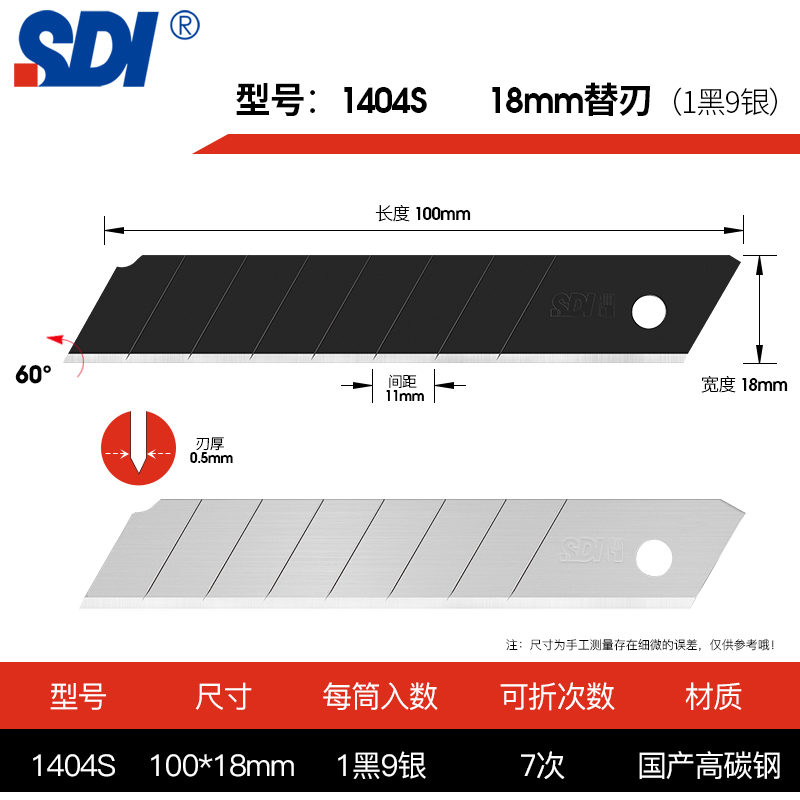 台湾SDI手牌1404S大号18mm美工刀片批发木工封边条修边刀片