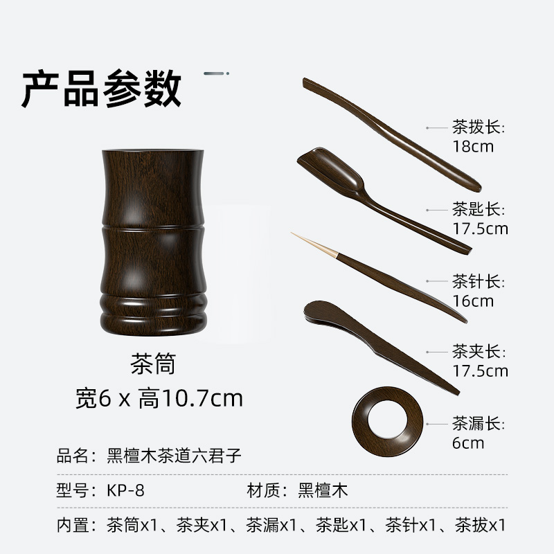 金灶原厂KP 茶夹杯夹功夫茶具茶道配件摆件 8黑檀木茶道六君子套装