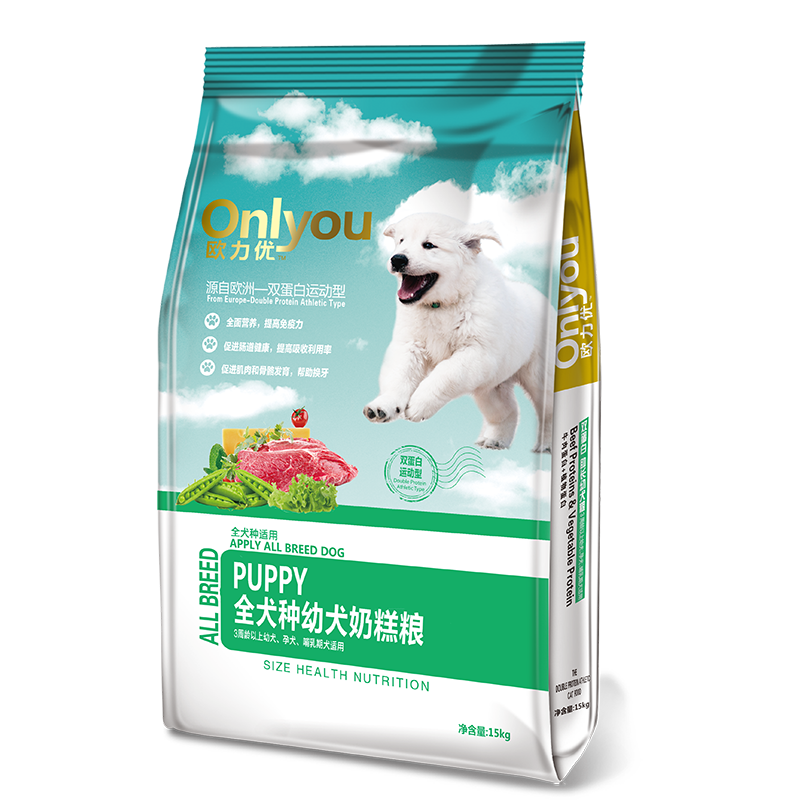 欧力优狗粮全犬种成犬幼犬奶糕15kg贵宾泰迪博美萨摩金毛牛肉味