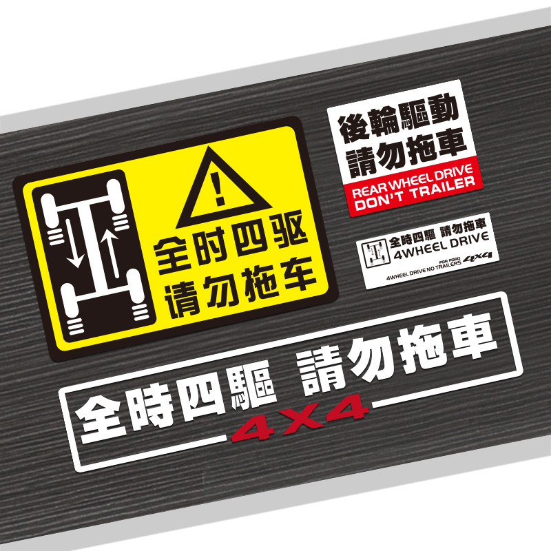汽车4WD全时四驱请勿拖车车贴纸越野反光贴后轮驱动警示贴划痕贴