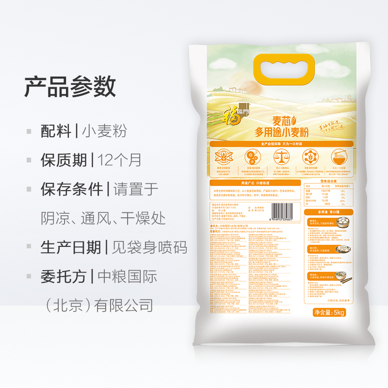 福临门麦芯多用途小麦粉中筋面粉家用烘焙原料 早餐面条