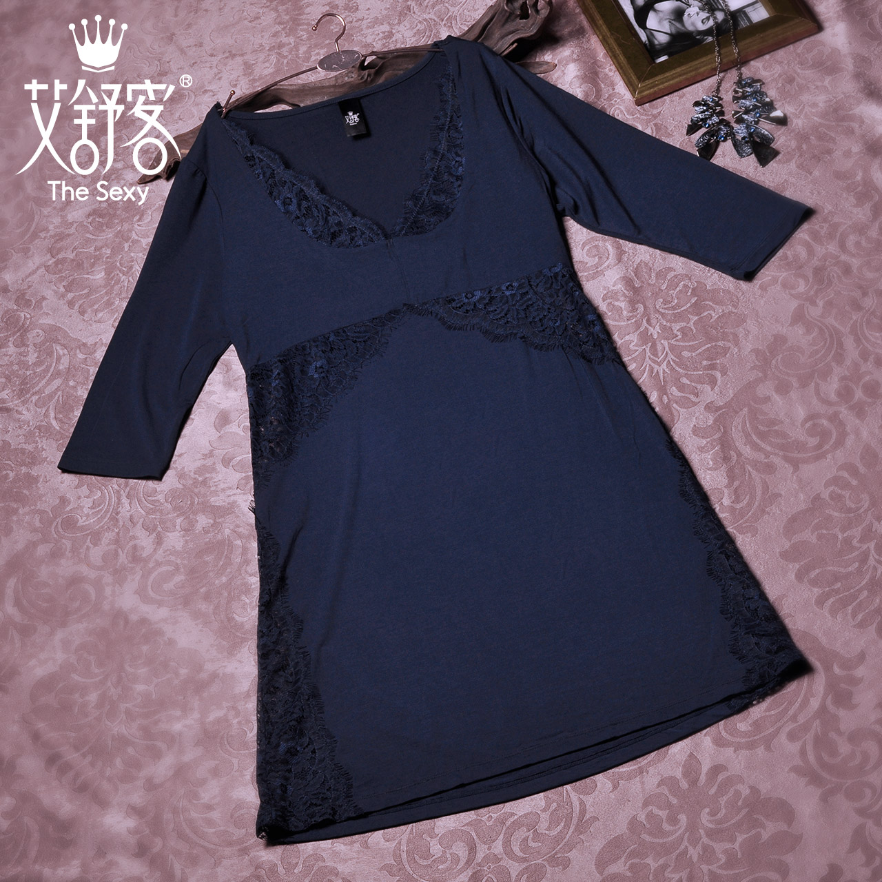艾舒客红色睡衣女莫代尔睡裙性感蕾丝女士内衣短裙舒适长袖 家居服