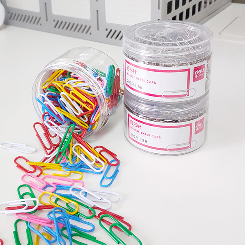 得力回形针金属彩色回形针200个筒装 回形针办公财务用回形针夹子3号29MM回形针彩色书签别针金属 曲别针盒装