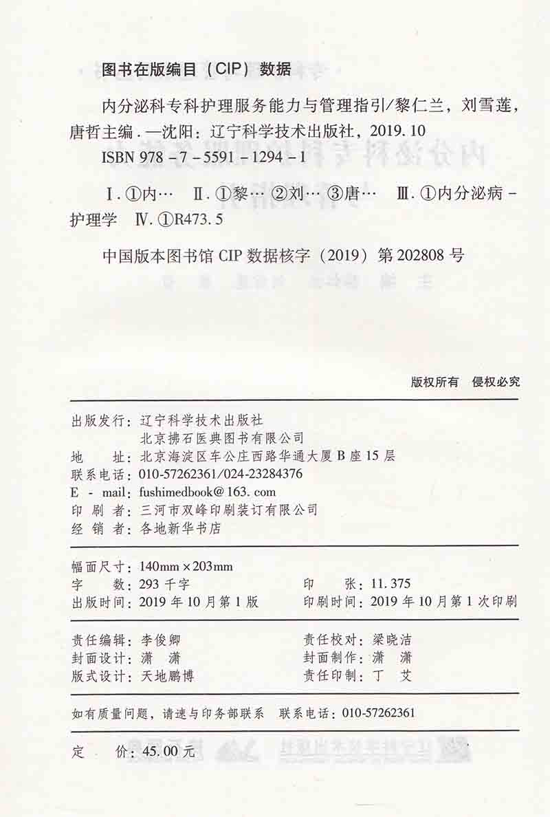 辽宁科学技术出版 专科护理与管理系列丛书 社 黎仁兰 唐哲 现货 刘雪莲 内分泌科专科护理服务能力与管理指引
