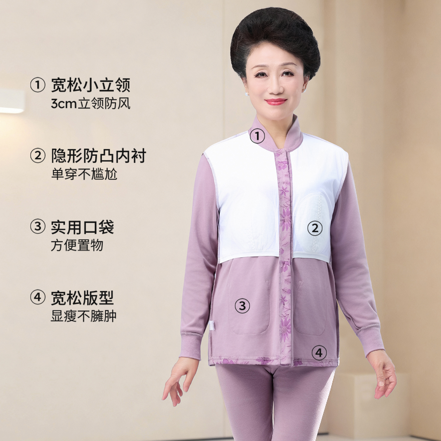棉毛衫 内衣女加厚全棉奶奶保暖套装 男 纯棉开衫 春织老年人秋衣秋裤