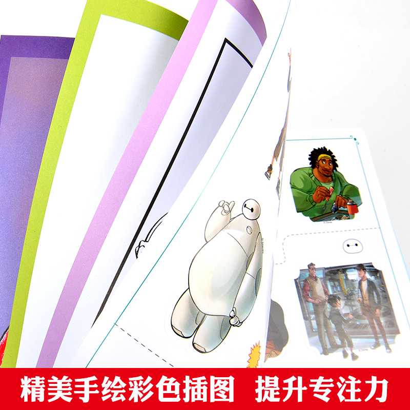 迪士尼益智游戏宝贝成长书超能陆战队3 12岁儿童动脑动手益智游戏贴纸涂色彩色绘本提升宝宝思维能力找不同数数走迷宫益智早教开发