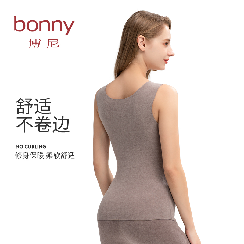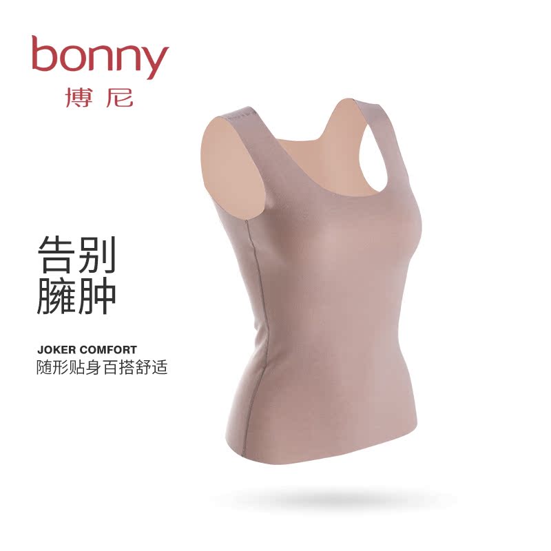 博尼无痕保暖背心加厚加绒打底上衣双面绒女多暖 Bonny 清仓