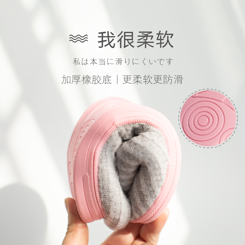 软底室内防滑产后居家拖鞋 厚底包跟毛绒保暖月子鞋 女秋冬季 棉拖鞋