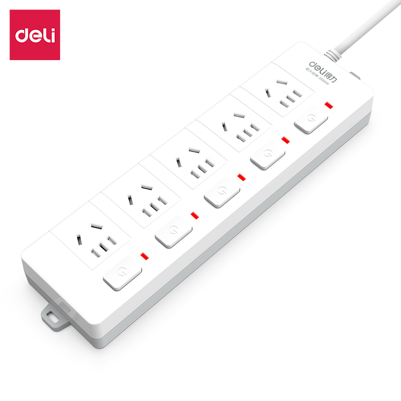 得力新国标插座独立开关延长线带线插座电排插线板家用带线拖线板