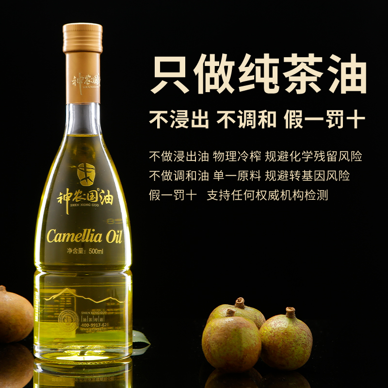 神农国纯天然有机山茶籽油一级冷榨不添加调和500ml×6瓶高端礼盒