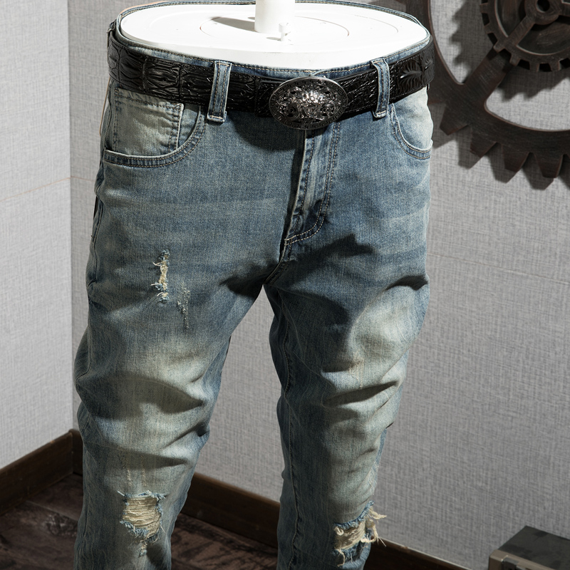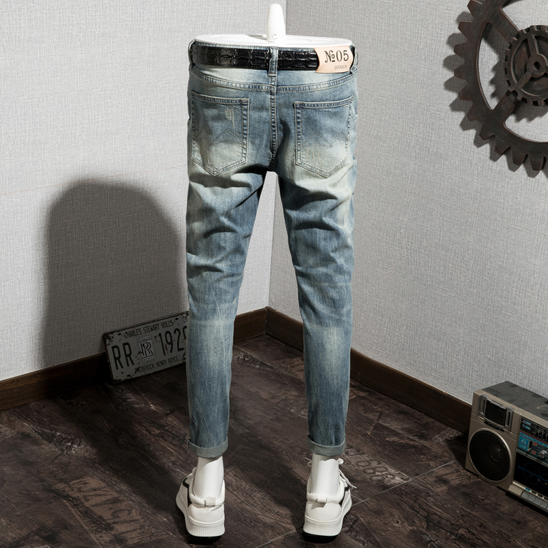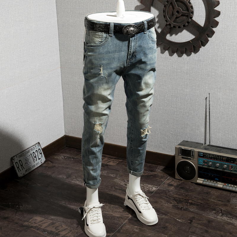 长裤 2025秋冬新款 男复古浅蓝青年个性 牛仔裤 子百搭夏 破洞小脚修身