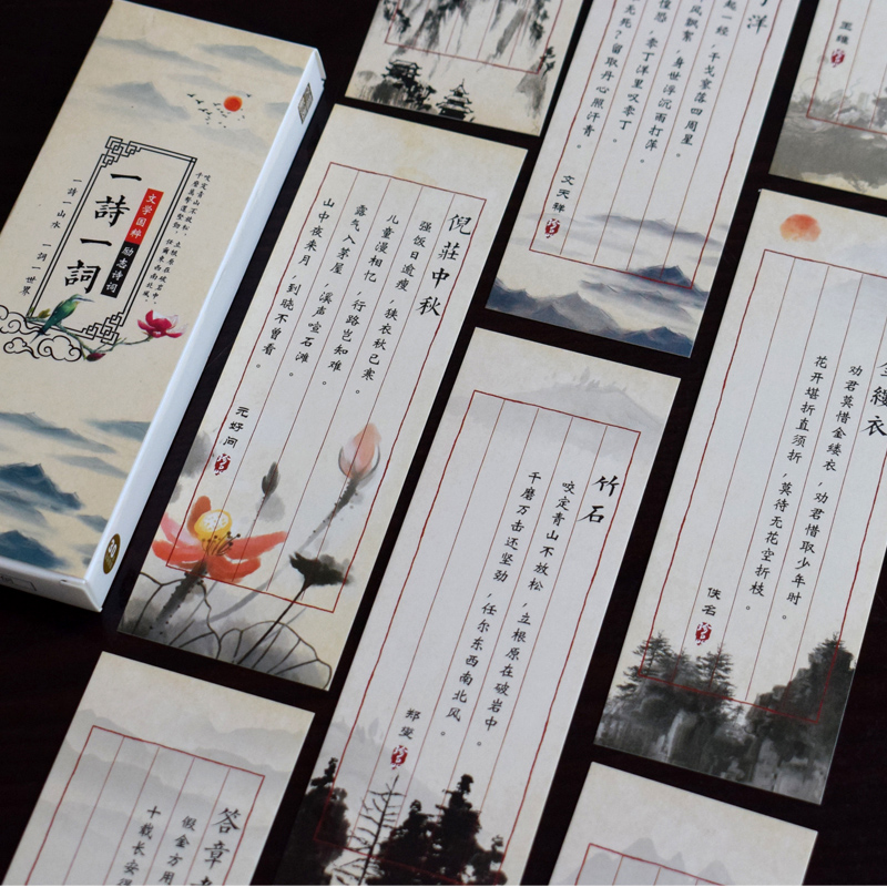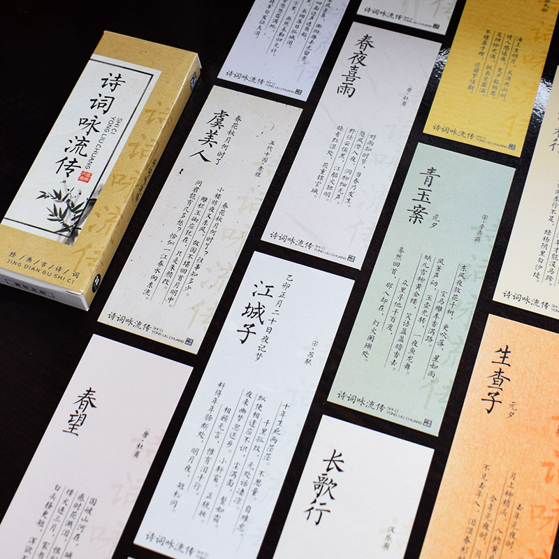 学霸书签纸质文具唐诗宋词诗经三字经楚辞左传中国风古诗词卡片古典国学经典 可爱创意小学生用品古风学习礼品