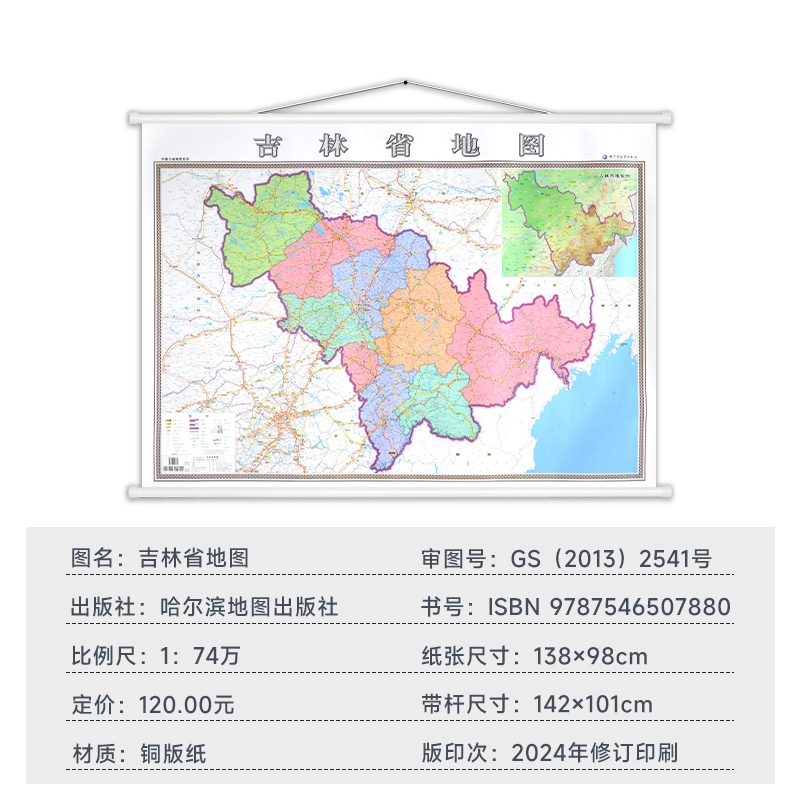 机场 比例1:74万 行政 1米横装 1.4 详情到村镇中心 河流 旅游 交通 吉林省地图挂图 2024新