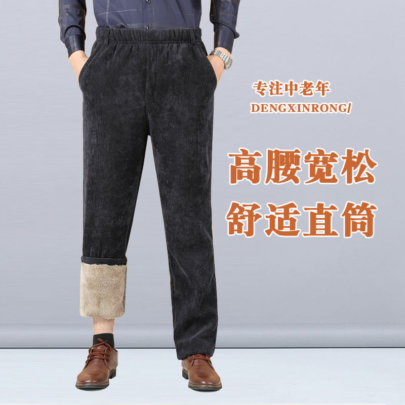 男爸爸中老年松紧宽松灯芯绒保暖外穿棉裤 子加绒加厚休闲裤 裤 冬季