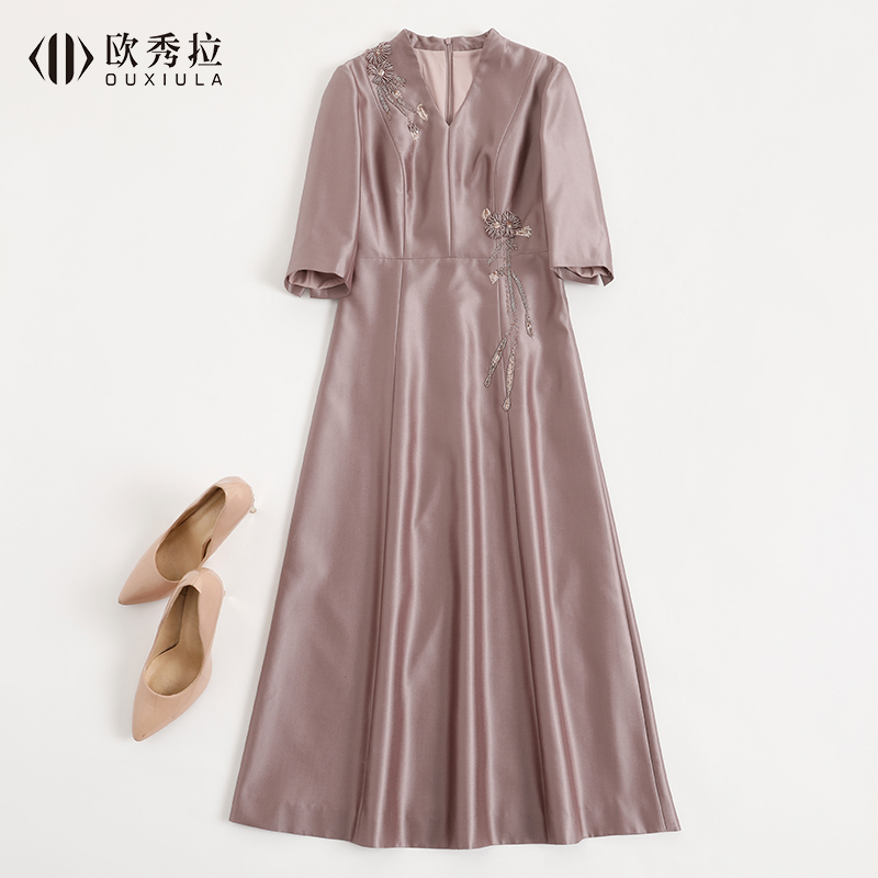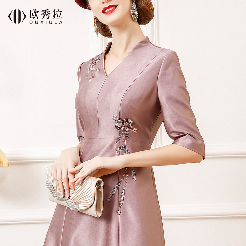 喜婆婆婚宴礼服连衣裙女2024春结婚婚礼妈妈装 高贵气质宴会敬酒服