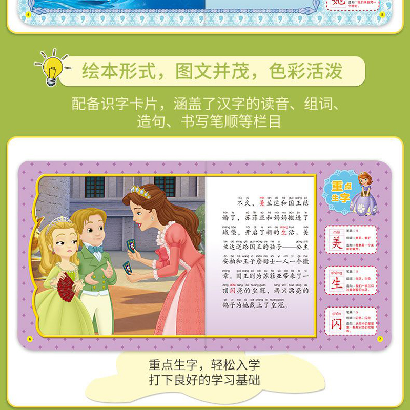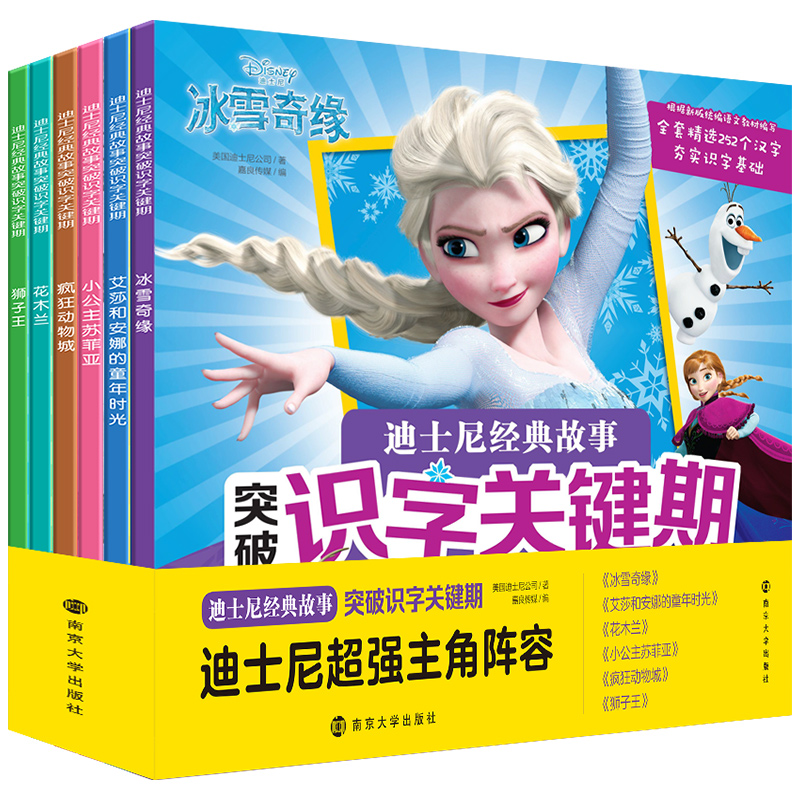 全6册 读物幼儿绘本3 迪士尼漫画故事书注音版 8周岁儿童识字卡片园连环画艾莎公主女孩爱莎女王早教女孩 冰雪奇缘突破识字关键期