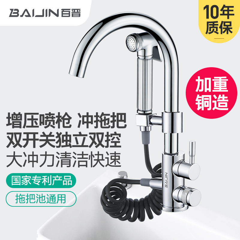 百晋阳台洗衣池拖把池水龙头拖布墩布加长喷枪抽拉式 高压冷热单冷