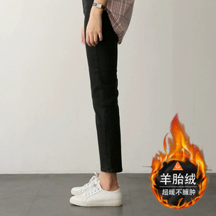 小个子八分烟管裤 宽松显瘦修身 子 女2021年春秋新款 黑色直筒牛仔裤