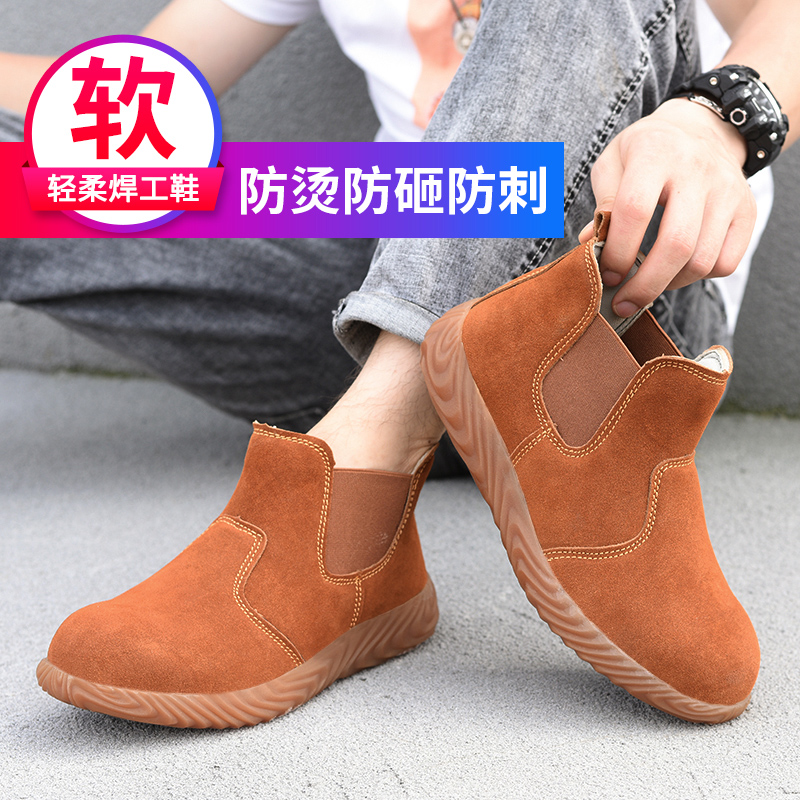 工地防砸防刺穿 电焊工牛筋底防臭高帮轻便软底工作鞋 劳保鞋 男四季