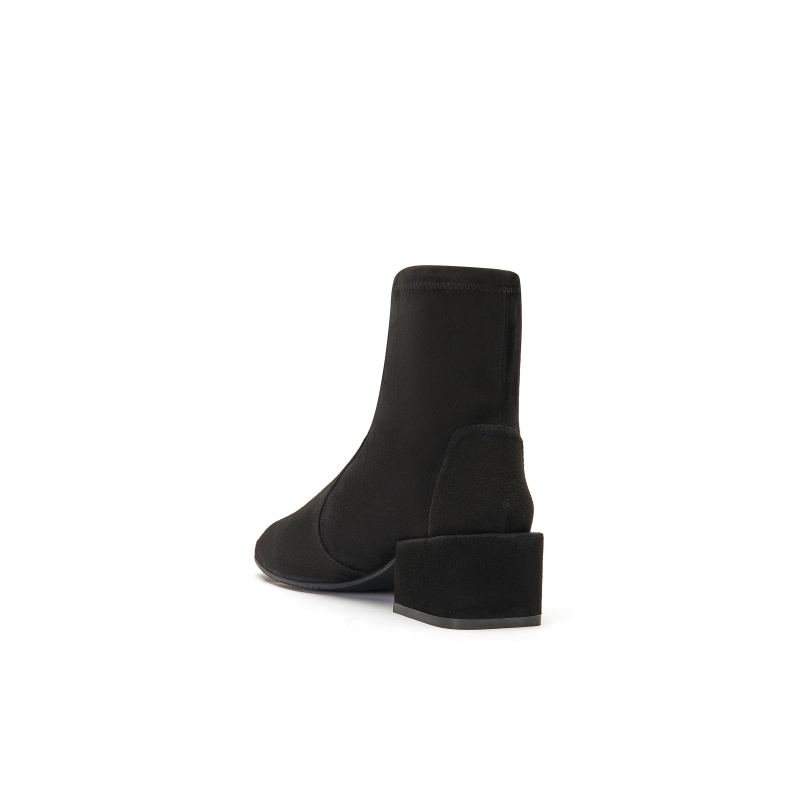 气质短靴子 千百度羊皮细高跟弹力靴袜靴女百搭冬季 静音系列