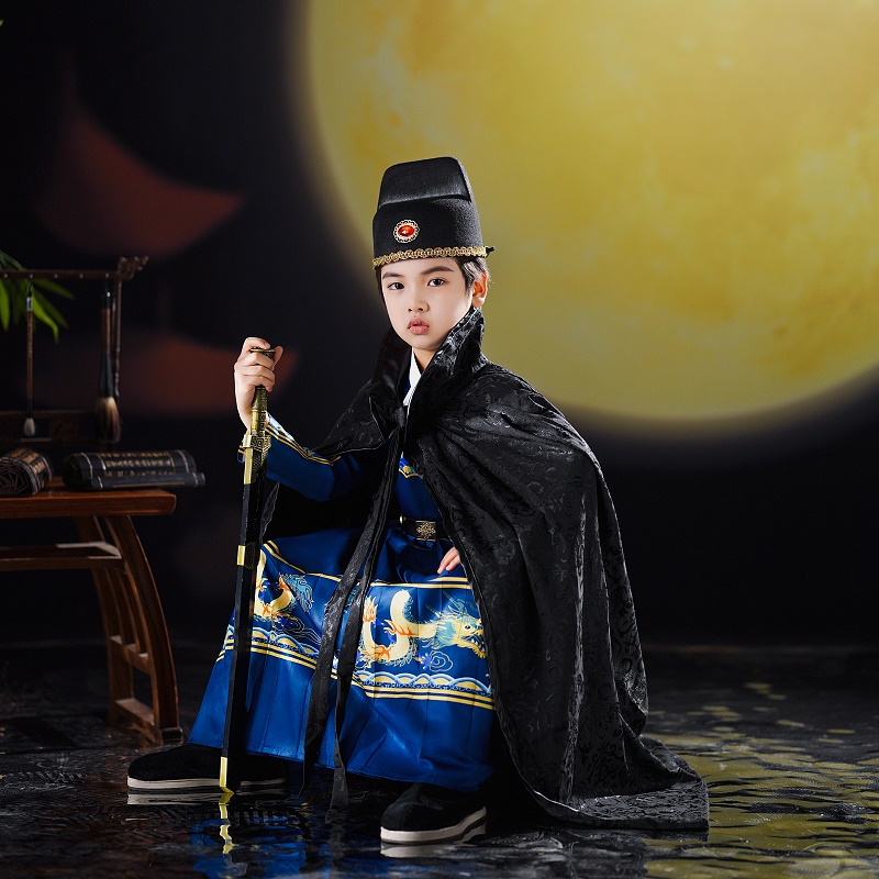 男童春秋款 儿童锦衣卫飞鱼服侠客演出服四大名捕明制汉服古装 新款