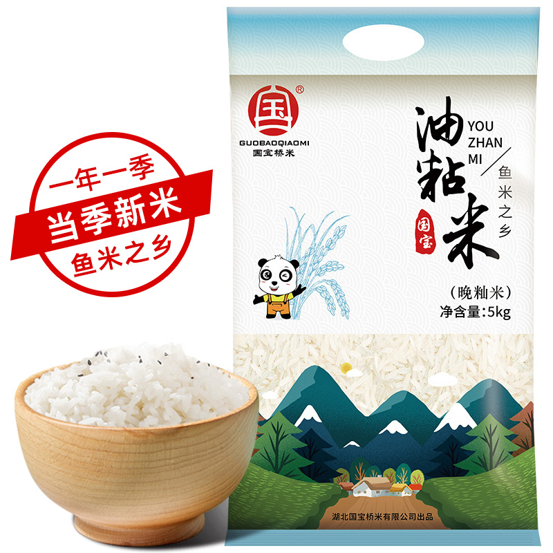 国宝桥米油粘米5kg平价大米10斤装 新米 湖北籼米煲仔饭专用米当季
