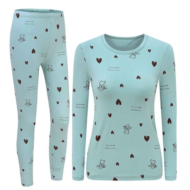 上衣磨毛 加绒加厚羊毛蚕丝秋衣秋裤 德绒保暖内衣女士套装 秋冬季