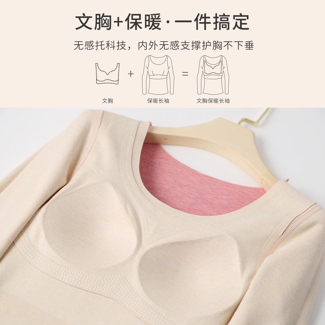套装 保暖内衣女士加厚加绒德绒带胸垫秋冬季 蚕丝打底无痕上衣新款