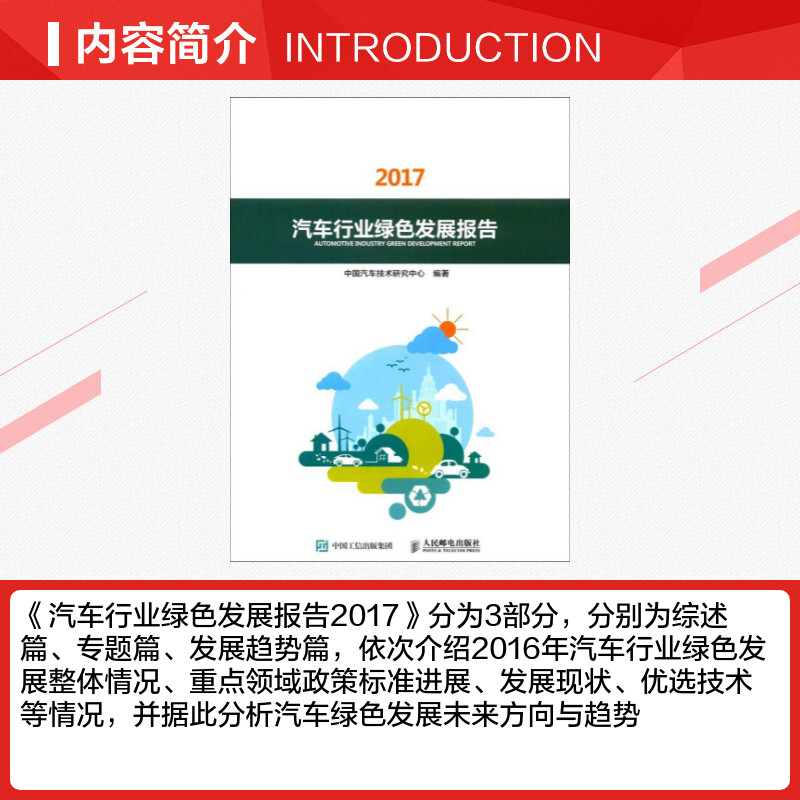 著作 各部门经济专业科技 新华书店正版 汽车行业绿色发展报告.2017 人民邮电出版 编著 图书籍 社 中国汽车技术研究中心