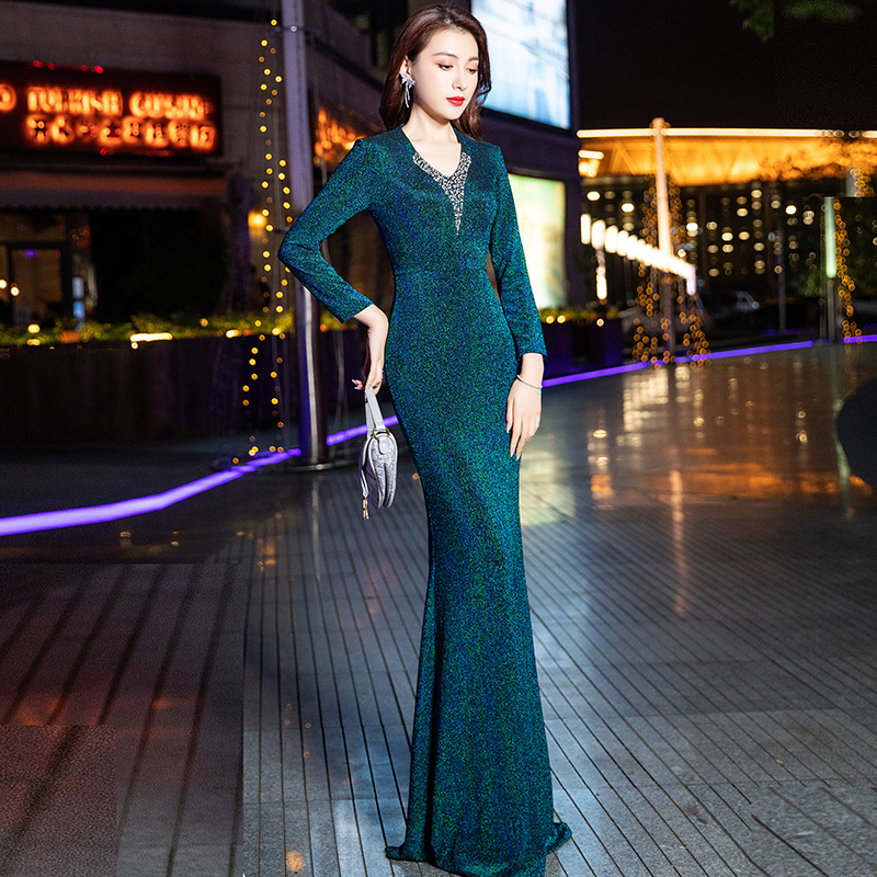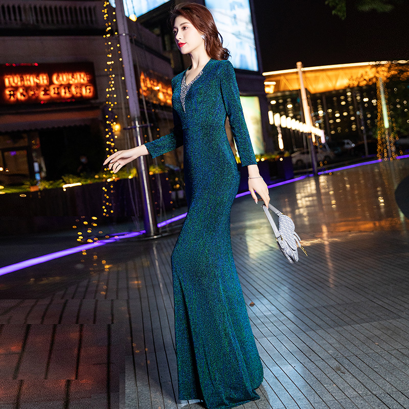 妈妈婚宴晚礼服女2025新款 宴会高端鱼尾高级感喜婆婆婚礼主持人裙